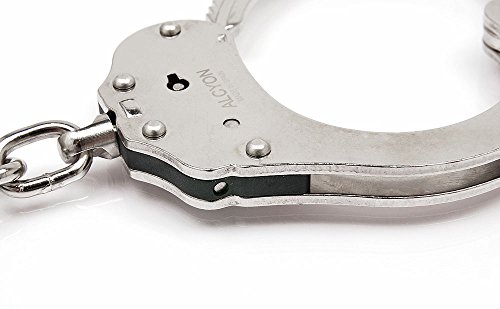 Verbunden durch zwei Kettenglieder und mit drehbaren Gelenken ausgestattet, erlaubt die Handfessel ein gewisses Maß an Bewegungsfreiheit und erleichtert vor allem das Schließen und Abnehmen. Auf diese Weise ist es ganz einfach möglich, die Handschelle auch unter Druck und auch wehrhaften Personen bei Bedarf schnell anzulegen. Dennoch ist die Verbindung so kurz gehalten, dass Manipulationsversuche und Angriffe wirksam unterbunden werden. Diese Eigenschaften werden noch zusätzlich durch den doppelten Schließmechanismus verbessert, der ein nachträgliches Verstellen in beide Richtungen effektiv verhindert und damit für erhöhte Sicherheit vor Verletzungen auf beiden Seiten sorgt. Und das in insgesamt 20 Schließpositionen, die einen Innendurchmesser von 165 bis 200 Millimeter umfassen. Als Alcyon Modell 5050 sind die Handschellen vernickelt und Silberfarben gehalten. Als Modell 5235 sind die Handfesseln schwarz und können so zur besseren Unterscheidung eingesetzt werden.
